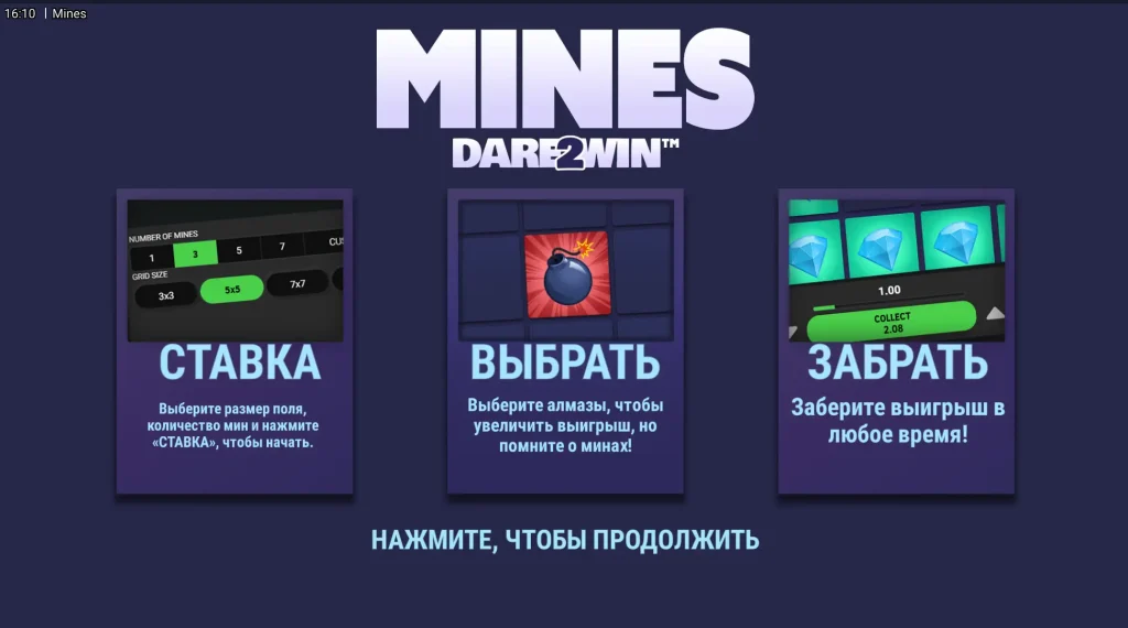 - Тип игры Instant Win / Dare2Win™ (Mines)