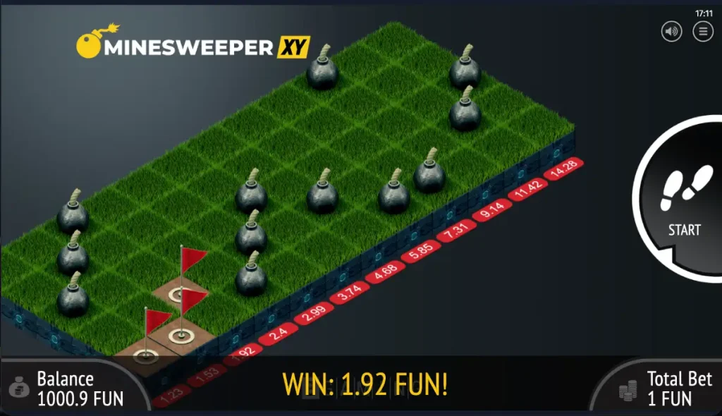 Ключевая особенность XY-версии — гибкая настройка поля: кроме классических квадратов, здесь доступны удлиненные прямоугольные сетки (типовые пресеты типа 2×3, 3×6, 4×9, 5×12, 6×15), изменяющие темп роста множителя и общий уровень риска. Чем больше и «длиннее» сетка и больше мин вы выставляете, тем более агрессивно растет потенциальная выплата и тем выше становится цена ошибки — именно в этой возможности тонко управлять риск-профилем и заключается отличие от многих конкурентов.